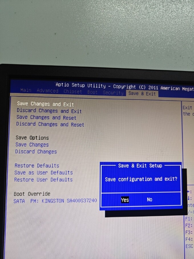 – 选择 Save Changes and Exit → Yes